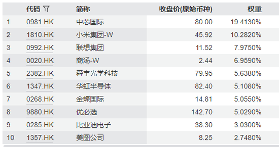 很明显,相比于那些传统的港股ETF,这只ETF里科技硬件比例能占到60%,倒是更符合我自己的投资方向。而且中芯国际和小米集团分别能占到20%和10%,集中度非常高。