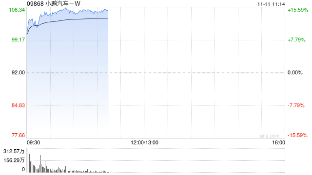 小鹏汽车-W(09868)早盘高开,截至发稿,股价上涨11.85%,现报102.90港元,成交额21.71亿港元。