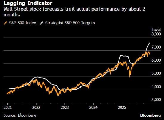 华尔街股市预测者向来以看涨著称,但他们对2026年的当前预期水平却令部分市场观察者忧心忡忡。