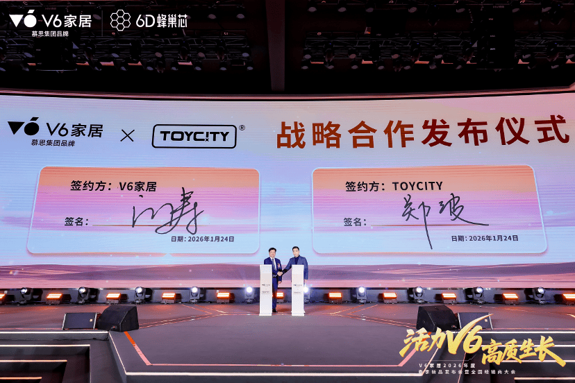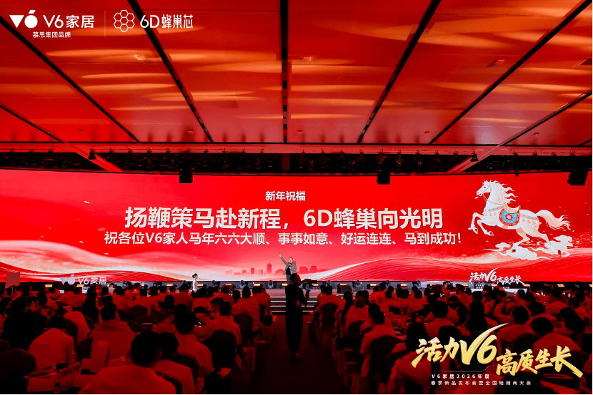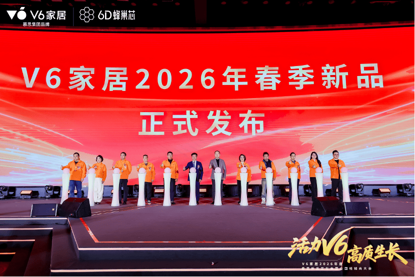 据悉,在这场以“活力V6,高质生长”为主题的全局性、战略性年度开局盛会中,V6家居通过新品发布及参观解读、跨界合作签约、全维营销赋能、创意歌舞表演等丰富多元形式,将“看不见的科技”与“可感知的体验”深度融合后的创新产品与合作伙伴、用户深度链接,并借助全体系、焦点化的品牌、营销、运营新政策、新举措、新布局,全方位助力V6家居在2026年开启加速进化新跃迁,引领家居行业高质生长新篇章。