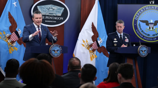 赫格塞思与凯恩将军召开记者会,通报 “史诗狂怒行动” 最新进展。