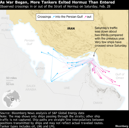 交易员们开始通过卫星应答器追踪油轮航线,发现部分船只接近海峡后又折返。随后袭击事件爆发,据报道已有至少四艘商船受损。