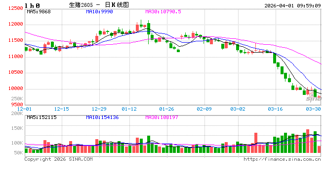 期货方面,昨日收盘生猪 2605合约9770元/吨,较前交易日变动-235.00元/吨,幅度-2.35%。现货方面,河南地区外三元生猪价格9.52元/公斤,较前交易日变动+0.02元/公斤,现货基差 LH05-250,较前交易日变动+255;江苏地区外三元生猪价格 9.91元/公斤,较前交易日变动-0.03元/公斤,现货基差LH05+140,较前交易日变动+205;四川地区外三元生猪价格9.34元/公斤,较前交易日变动+0.11元/公斤,现货基差LH05-430,较前交易日变动+345。